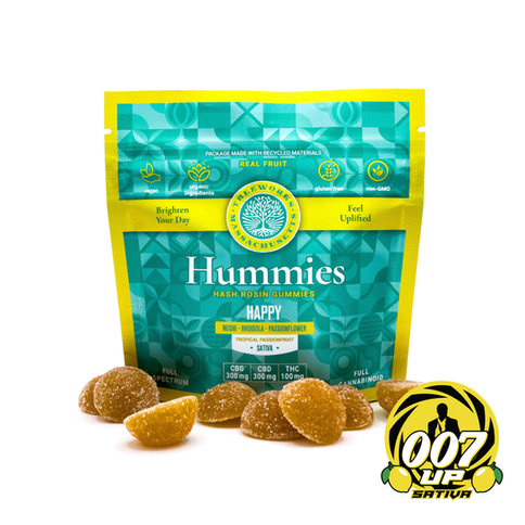 The Happy Hummy was specifically created with one thing in mind: to make you feel great. One of our most delicious and enjoyable products yet. Imagine yourself relaxing on the beach in the sun: that feeling of pure bliss exactly what the Happy Hummy elicits. Relieving stress, uplifting your mood, and fostering an overall positive outlook, the Happy Hummy is the ultimate gummy. With a 3:3:1 CBG, CBD, THC blend and some of the most effective stress-relieving herbs available, the Happy Hummy has you covered every day of the week.